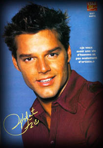 And that's not the end of the story, Ricky's star continued to climb. in 1999, Ricky won his first Grammy for Best Latin Pop Performance, he then went on to release his first English album. His self titled album, Ricky Martin, when released, sold millions around the world. The first single, "Livin' la Vida Loca" went up to number one not only in the US Billboard charts but also 26 other countries!! The song and album also gave him five Grammy nomination in the year 2000. Although Ricky did not win anything that night, his sell-out concerts in the States and his record-selling singles proves to critics that he is not just some one-hit wonder. Year 2000 will be another busy year for the man who had rock the world and will continue doing so - RICKY MARTIN